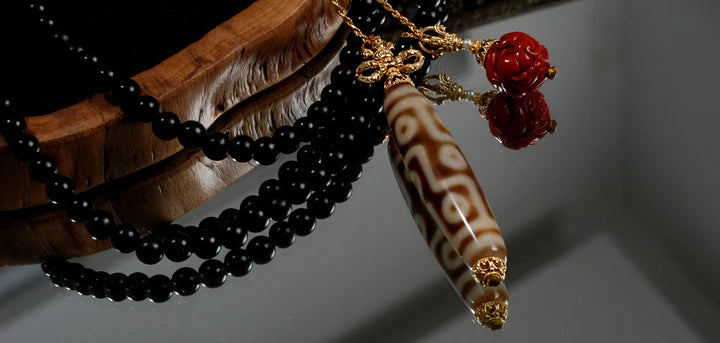 Dzi beads are ancient Tibetan beads believed to bring good fortune and ward off evil. Made from agate and inlaid with natural designs, these beads ...